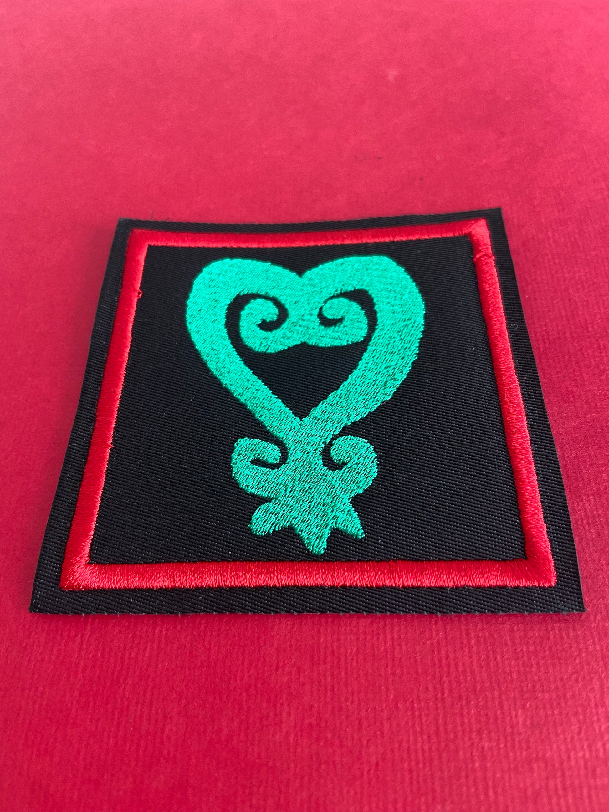 Square shaped RBG Sankofa Heart Patch.